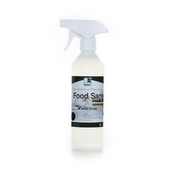 - Spray on after cleaning food equipment and leave overnight for proper disinfecting.